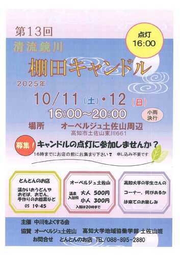 とんとんのお店様より「清流鏡川棚田キャンドル」のご案内をいただきました。