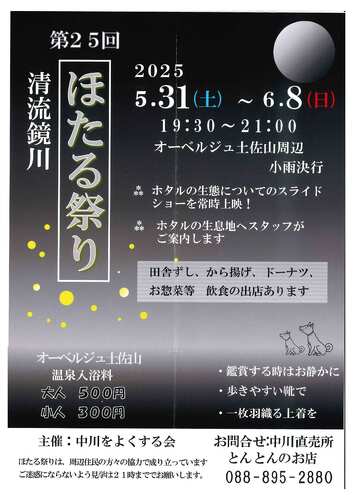 とんとんのお店様より、「ほたる祭り」のご案内をいただきました。
